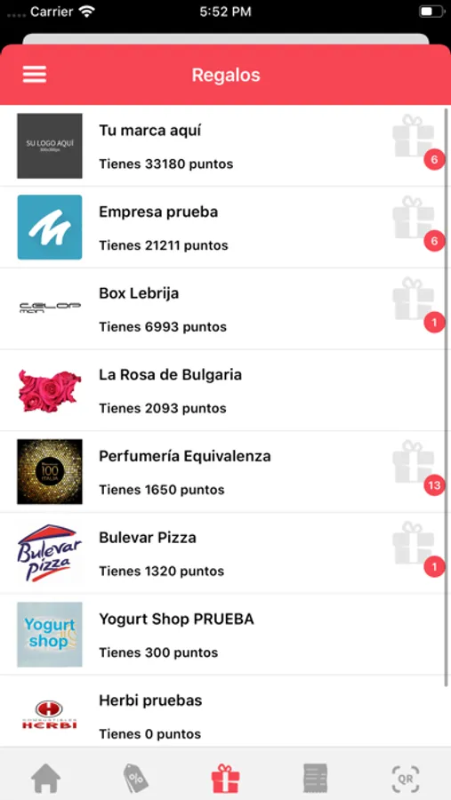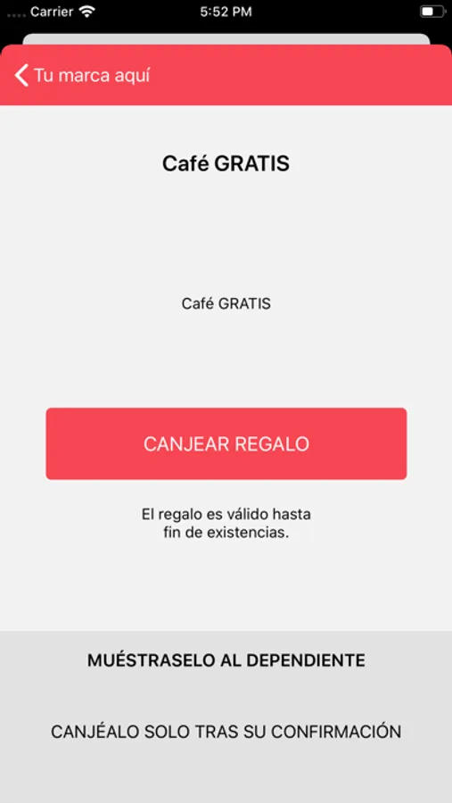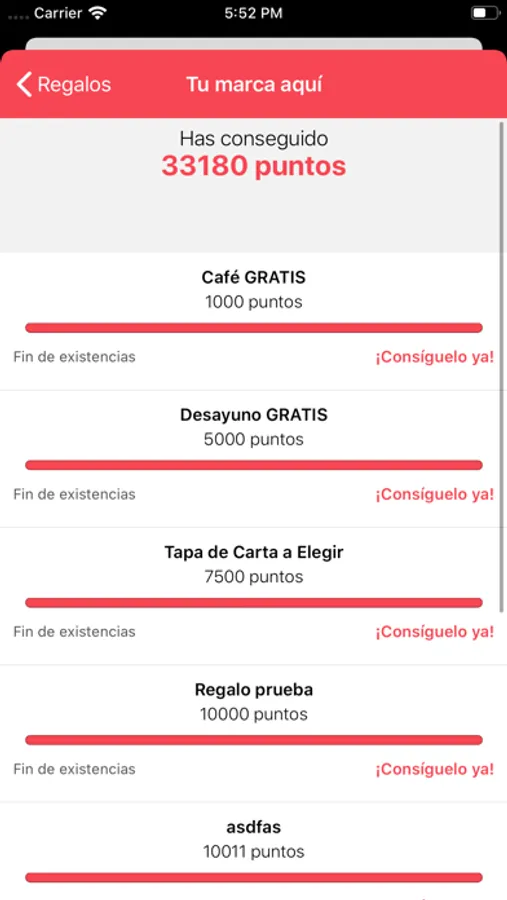 Una vez sigas una de estas dos opciones recibirás una notificación donde verás los puntos conseguidos en el comercio así como los regalos que pueden conseguir con los puntos actuales.