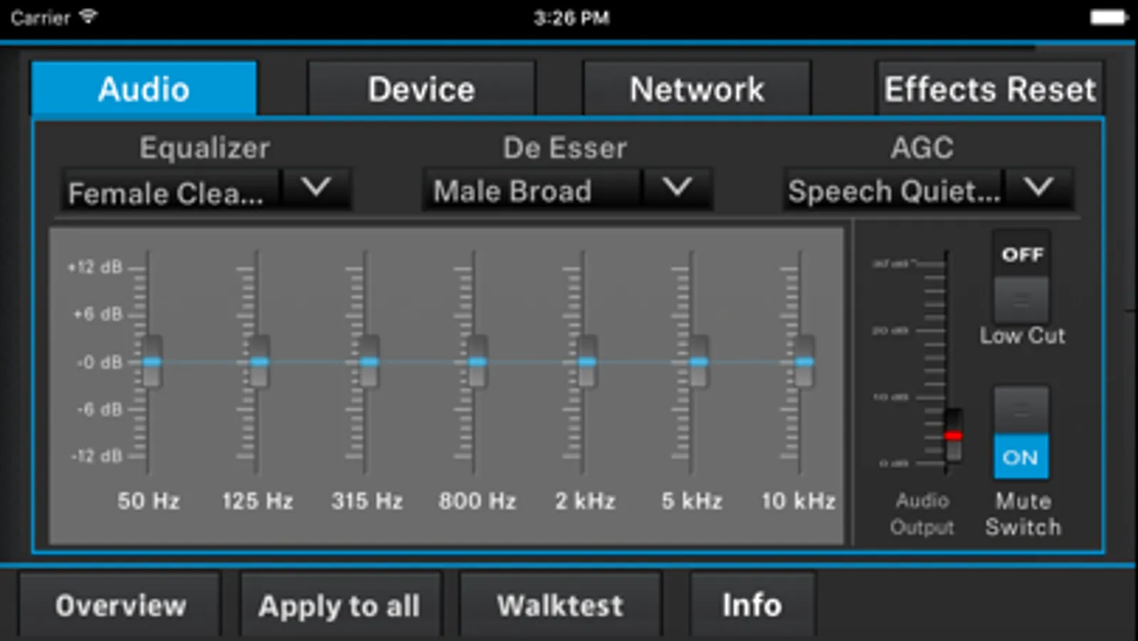 With the Editing view, you can take full control over any setting of the system. For changing the name, choosing an Equalizer, AGC or De-Esser preset, (de-)activating MUTE switch or adjusting the Audio Output Level, you do not have to be where the physical receivers are located. You can even modify any parameter for multiple receivers at the same time; speeding up setup times dramatically.