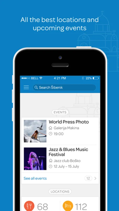 Discover new places and events, and save them as you like. And have the best trip ever!