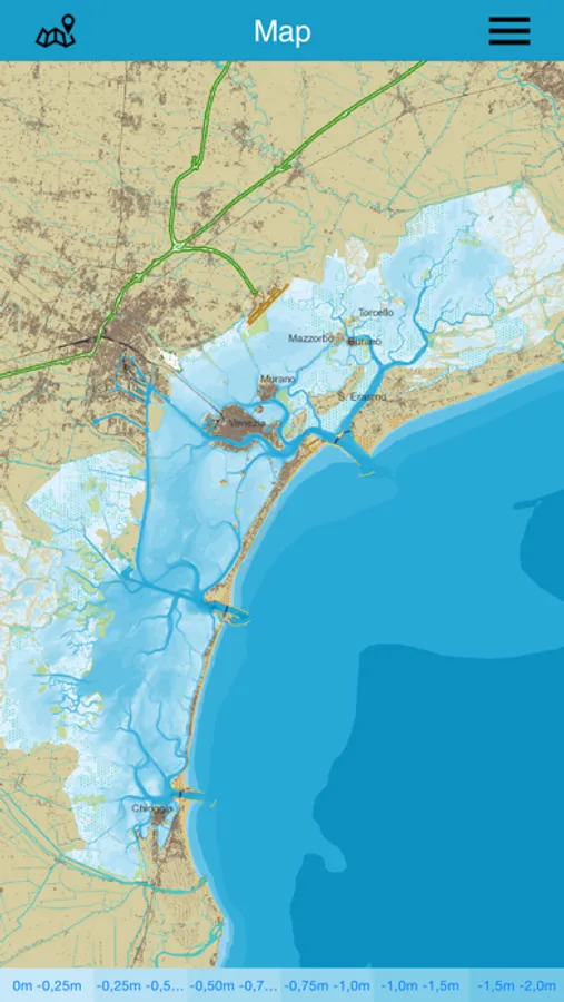 The first App of the Venice Lagoon cartography, produced by Mare di Carta publisher, based on the experience of the same map paper version, with scale 1:25.000, drawn up on the basis of the official data of the « Provveditorato Interregionale per le Opere Pubbliche di Veneto Trentino Alto Adige Friuli Venezia Giulia » that,for over 500 years, takes care of and works on the Lagoon of Venice, under the name of Magistrato alle Acque.
