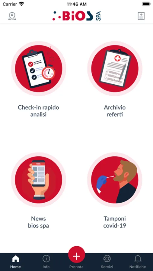 - Consulta l'archivio referti delle tue analisi direttamente dal telefonino