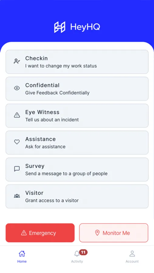 An enterprise level application that adds the human element to your organization's emergency, security systems and Duty of Care. Only people can use their intuition and are therefore the best sensors to add to your situational awareness. Users must be registered by their organization with prior agreement as partners of HeyHQ, inc.