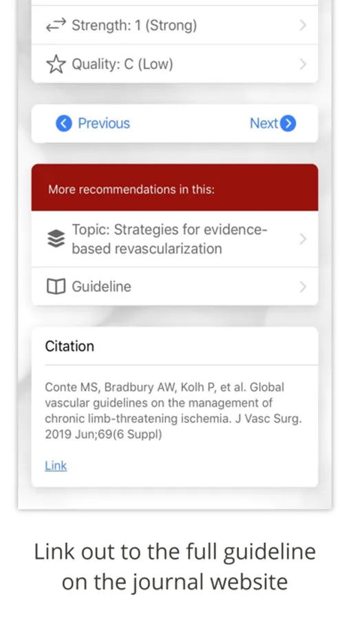 The SVS Interactive Practice Guidelines is a platform to deliver evidence-based SVS clinical practice guidelines in one single app.