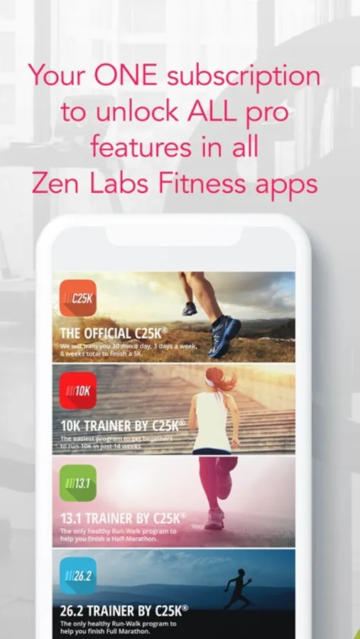 ◉ Full access to C25K, 10K, 13.1, and 26.2 running programs