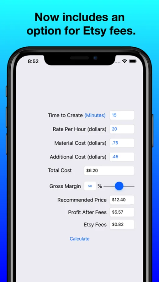 I started off selling small handmade items on various sites. Initially, I struggled with pricing. How do you balance costs, while at the same time making a decent profit. To achieve this balance I spent a lot of time with paper and calculators trying various options. I eventually decided that there should be an app to do it for me.