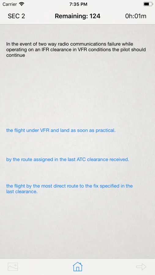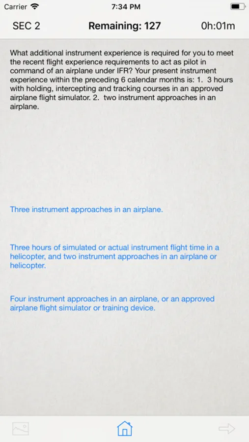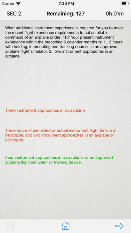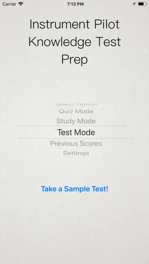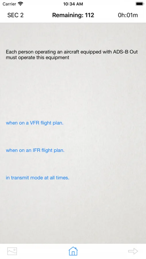 Test Mode - Simulates the test you are going to take at a FAA Knowledge Test Center. In this mode, you are asked 60 questions that are pulled from the entire question bank.