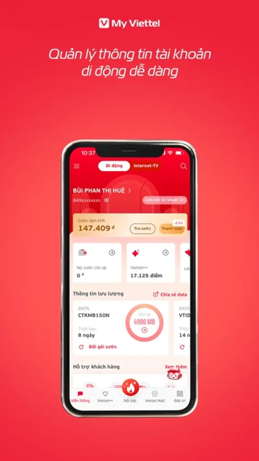 Ứng dụng viễn thông tiên phong trong việc mang lại tiện ích cho mọi khách hàng. Hãy cùng My Viettel trải nghiệm không chỉ trong viễn thông mà hơn thế nữa!