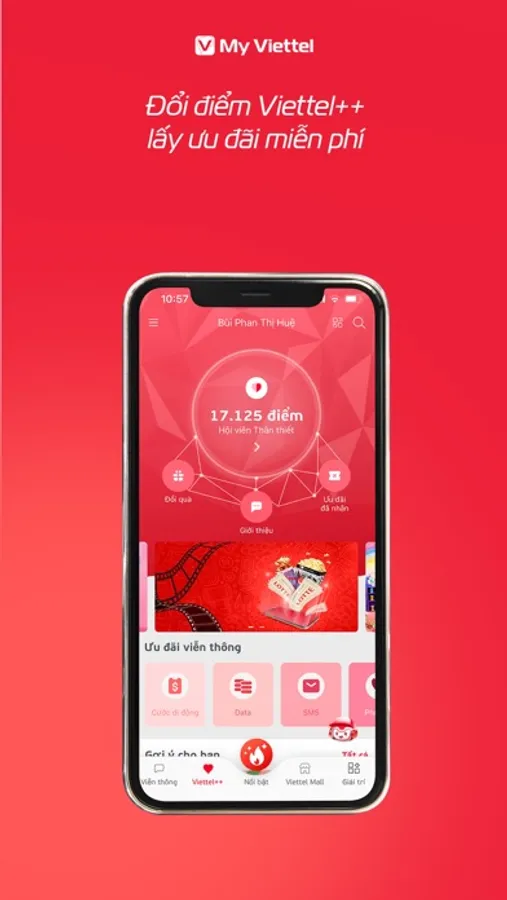 Với mỗi giao dịch, bạn sẽ được tích điểm Viettel++ và có thể đổi sang hàng ngàn ưu đãi, voucher siêu Hot. Cực đơn giản để tiết kiệm chi tiêu, chỉ cần dùng điểm đổi sang Gói cước, Data, SMS… và cơ hội nhận vô vàn voucher miễn phí.