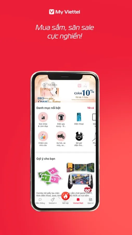 Giờ đây bạn đã có thể mua sắm ngay trên ứng dụng My Viettel, săn Deal – giá siêu Hot chỉ với một chạm. Mua sắm cả thế giới trong tầm tay với các sản phẩm E-commerce như đồ điện tử, đồ gia dụng, hàng tiêu dùng, bách hóa online… Và các sản phẩm cực hot khác như E-voucher, dịch vụ Booking, mua vé xe rẻ,…
