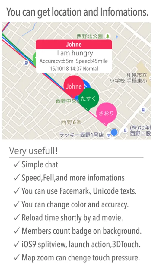 ・Group Location tracking is change Map position and zoom auto control ,all user keep on the map when Tap Group Location tracking button.