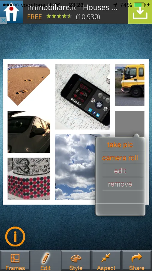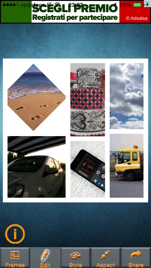 هذا التطبيق يساعدك بسرعة الجمع بين عدة صور في صورة واحدة الحجم مؤطرة بشكل جميل والكولاج فريدة من نوعها مع شرح في ثواني، ثم سهم تحفة الخاص بك الفيسبوك، تويتر، فليكر، وأي وسائل الإعلام الاجتماعية.