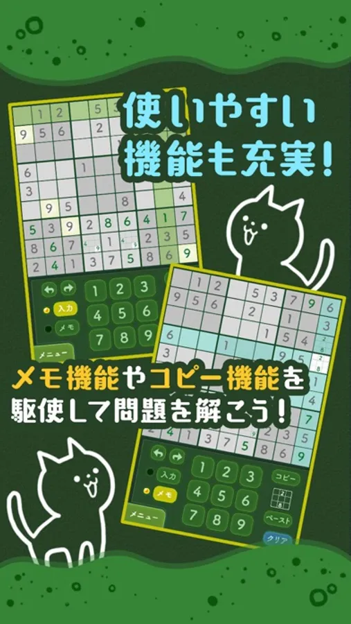 現在選んでいる数字と同じ数字とメモが光る機能など
