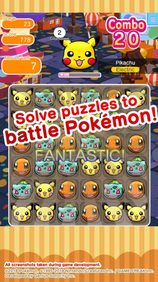 Pokémon Shuffle is a whole new puzzle game! Line up three or more Pokémon vertically or horizontally to battle against wild Pokémon.