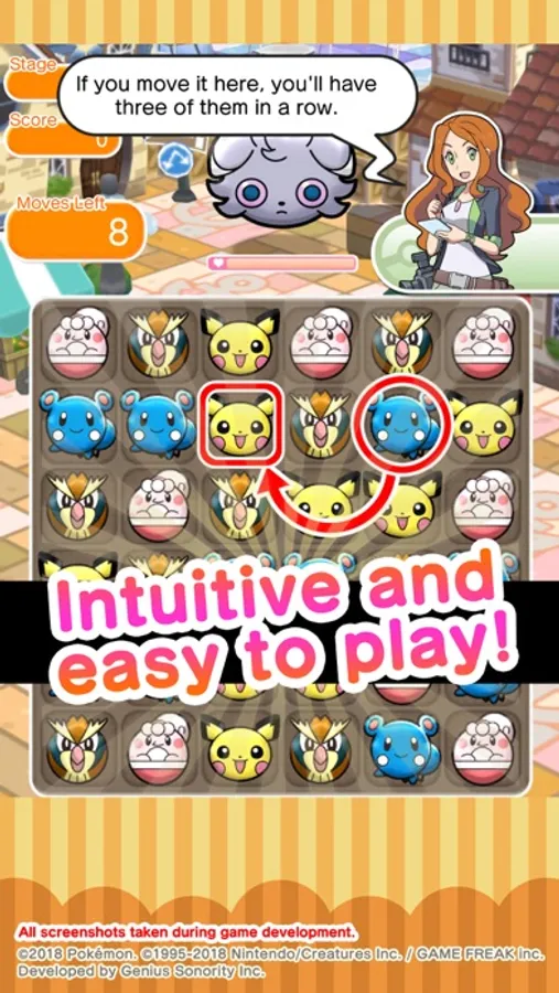 All you have to do in Pokémon Shuffle Mobile is select a Pokémon and its destination in the puzzle area to cause combos automatically—anyone can play it!