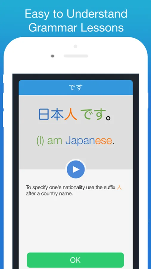 - Writing lessons with all Hiragana and Katakana.