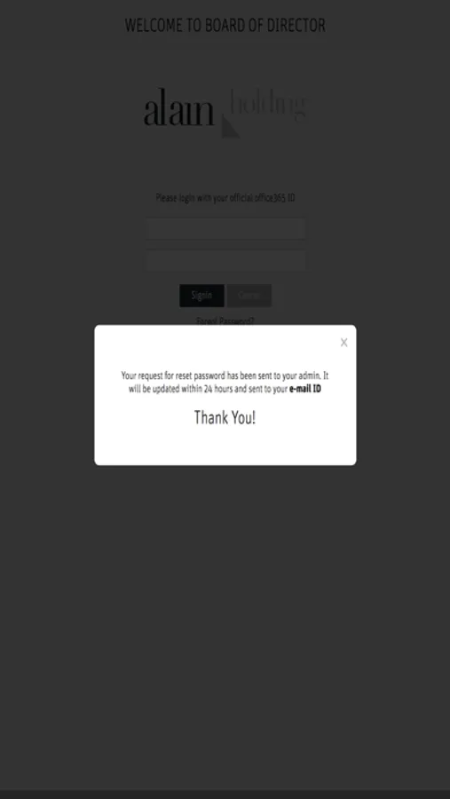 - It allows login to BOARD OF DIRECTORS in company through office 365 credentials.