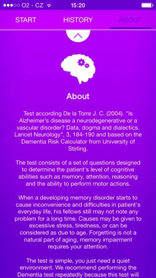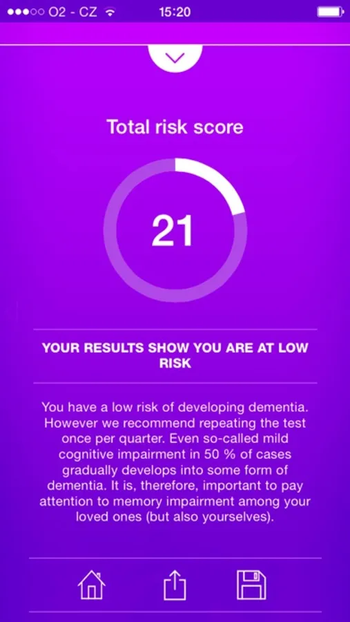 The Dementia Test is a complex and precise risk calculator for detecting dementia. Using a combination of multiple test algorithms, we developed the test, which consider a wide range of factors and is able to recognize smaller nuances than any other risk calculator. After completing a brief questionnaire, calculates the potential risk of developing dementia in yourself or your close relatives. This user-friendly application excels in its simplicity of use and is a great aid in preventing this serious disease.