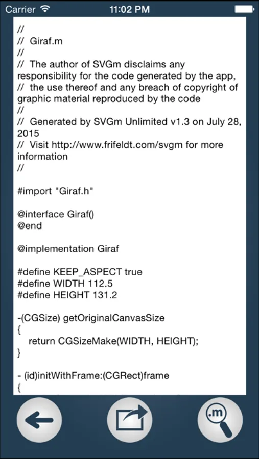 SVGm Unlimited is a utility that can convert SVG (Scalable Vector Graphics) files to Swift or Objective-C code. Compared to the free version "SVGm" this paid version can generate and export Swift code.