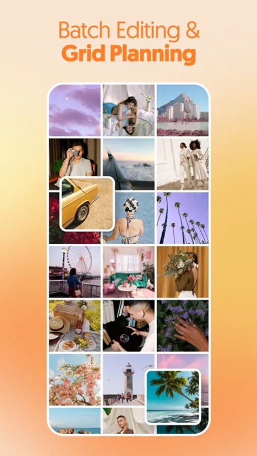 Plan out your Instagram grid right in the app! Select the right filters and effects in the photo editor and preview before you post. Batch editing allows you to edit multiple photos at once, making it easier than ever to add effects to a queue of photos.