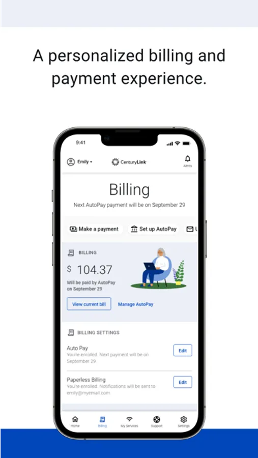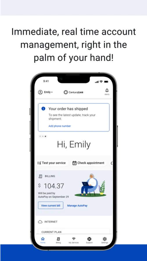 • Get personalized alerts, so you can see the status of your order, or find out if there is an interruption to your Internet service.