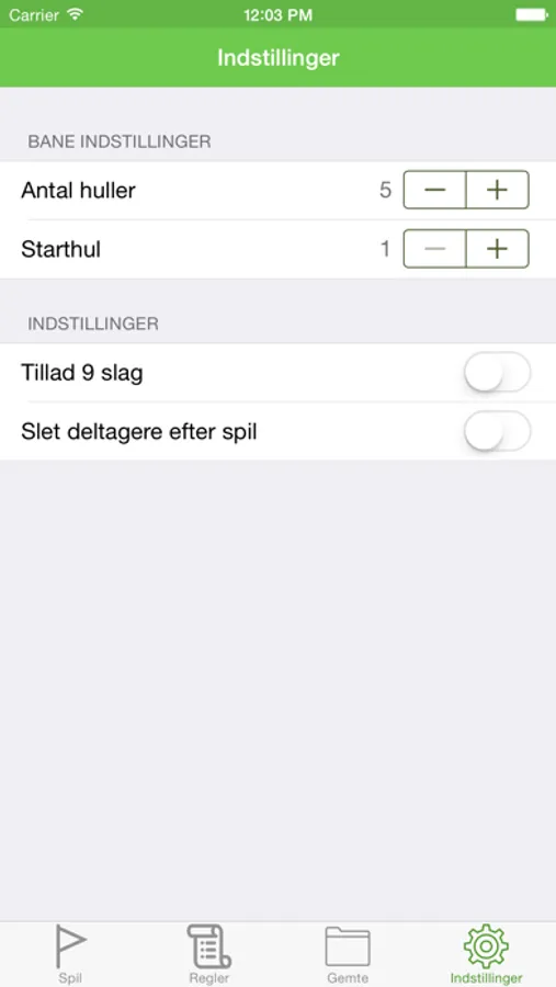 Med app'en kan du selv justere hvor mange huller banen har, og hvilket hul du starter ved.