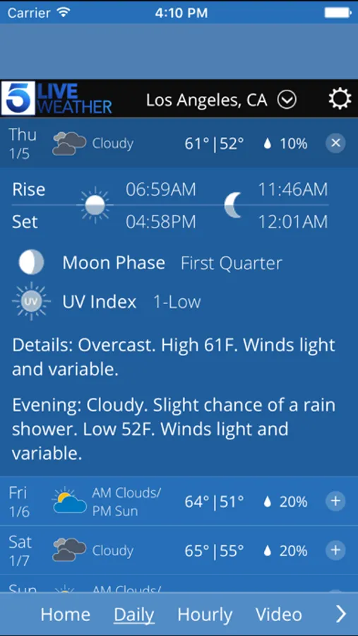 The KTLA Mobile Weather App includes: