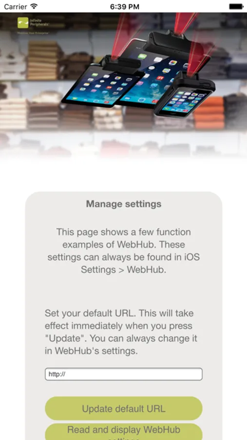 WebHub is a web browser designed to work with websites/web-apps that want to interact with Infinite Peripherals' hardware. WebHub can also be used as a normal web browser as well.