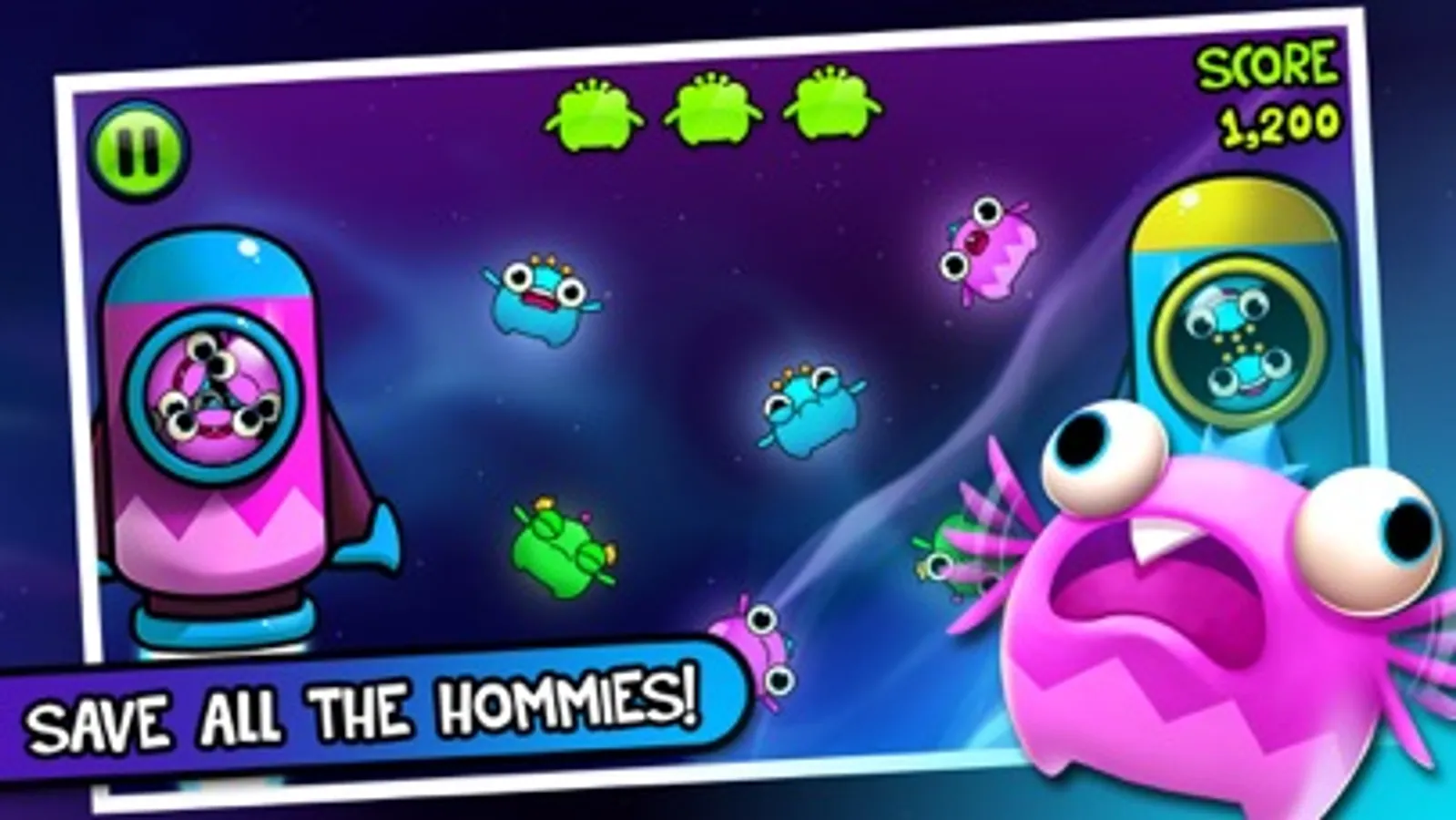 Take each Hommie to it's corresponding ship, battle enemies and bosses, discover new worlds, upgrade your power ups, choose between different game modes, unlock secret characters, compete with your friends for the maximum score and play tons of amazing levels!