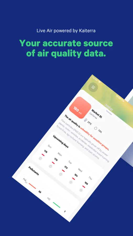 Developed by Kaiterra, a leading company in air quality monitoring, Live Air presents real-time air quality information on a hyperlocal level.