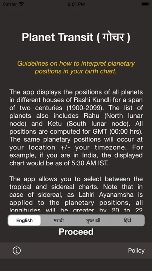 Wondering whether you are currently transiting through Sade Sati (साडे साती)? What is today’s house position of Jupiter (गुरु) in your birth chart? How are different planets placed in your birth chart as of today; what will be their position after a month/quarter/year? When will Venus (शुक्र) enter my Seventh house (सप्तम स्थान)? This app will help you look up planetary positions in your birth chart over a period of two centuries (years 1900-2100).