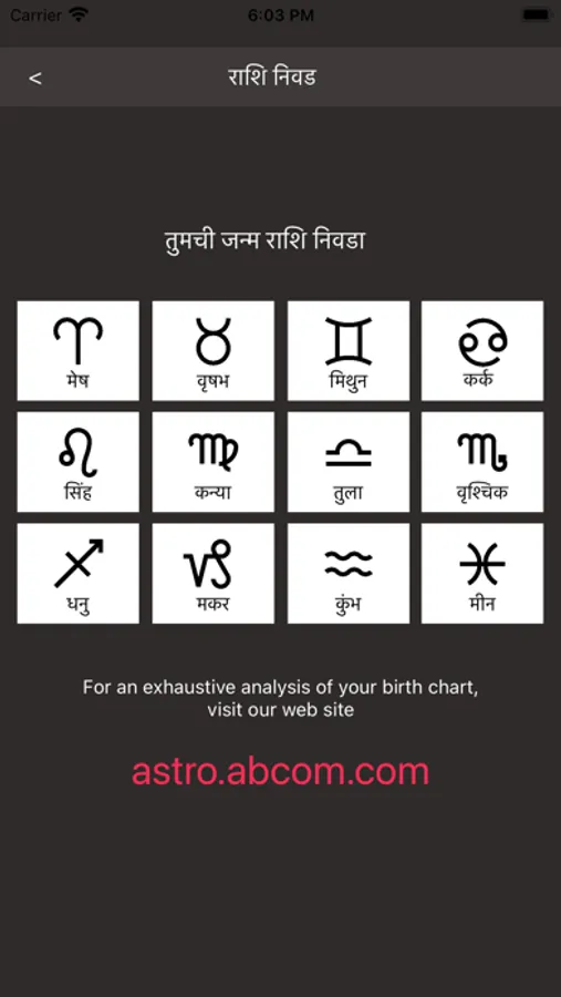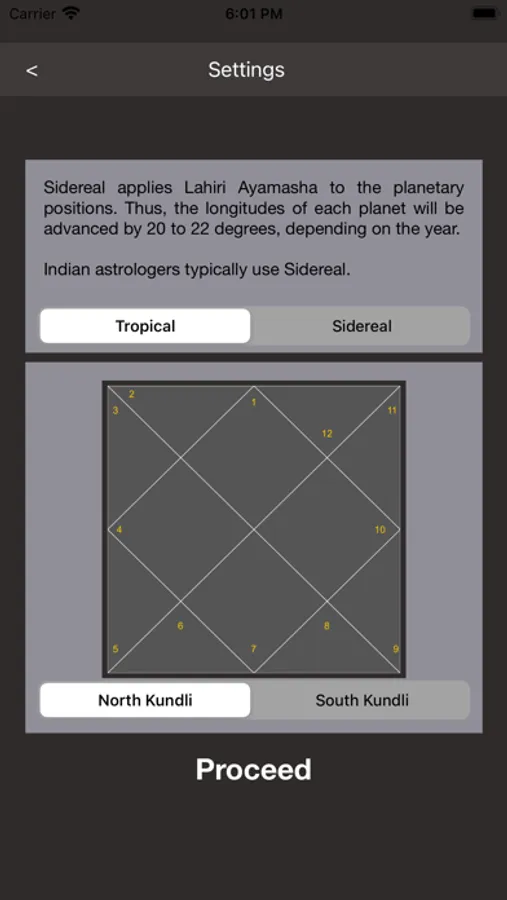 Select between Tropical (Sayana / सायन) or Sidereal (Nirayana / निरयन) and North or South type of Kundali (birth chart). You also get a choice of four languages for your chart.