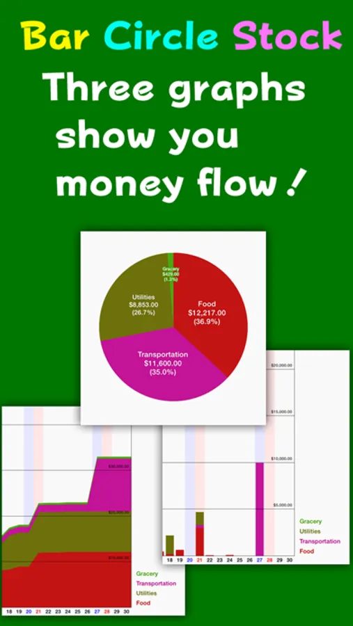 Then, RaCaibo sum up your expenses automatically and make three graphs.