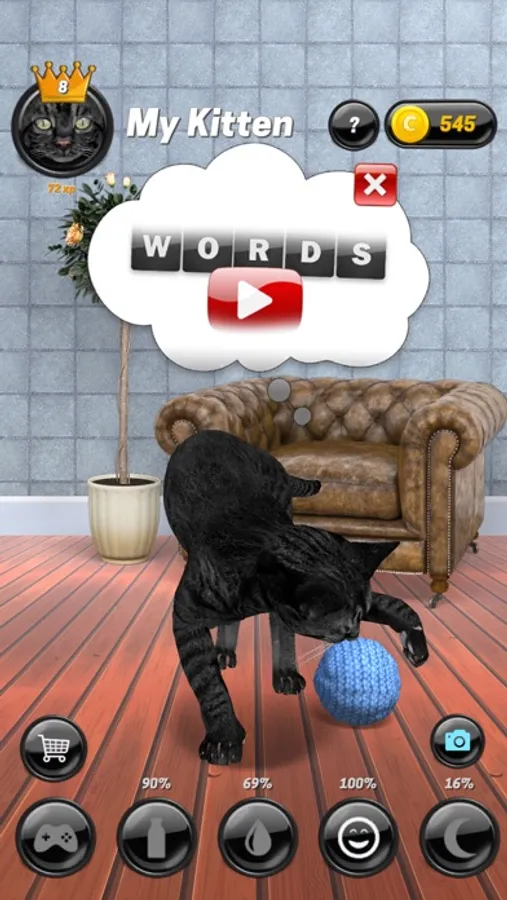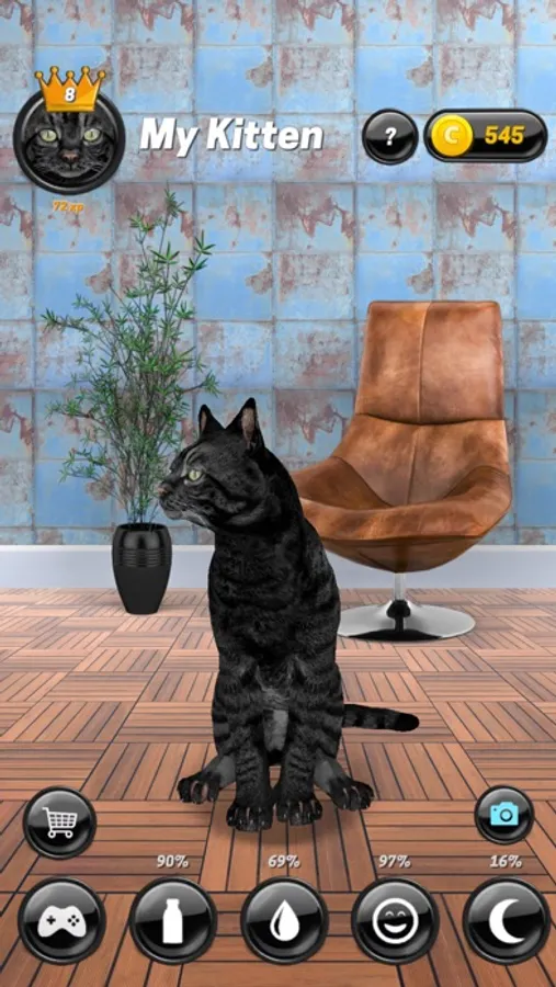 * Tap the kitten face to see him close