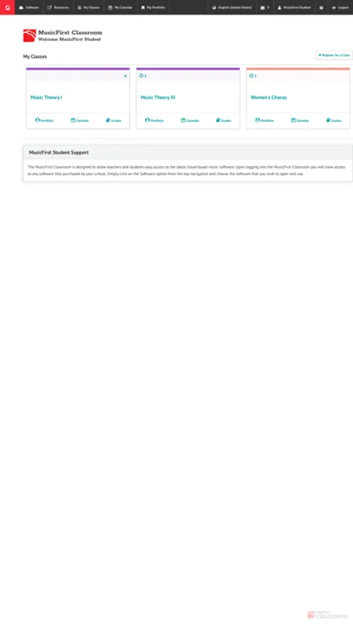 The MusicFirst Student App requires a student username and password, provided by their teacher or school administrator.