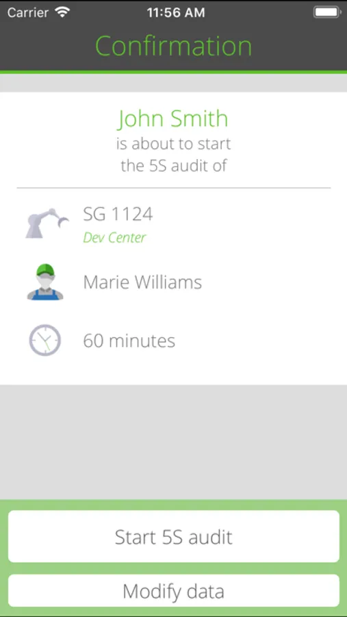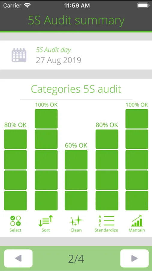 • Obtain a global mark of your 5S audit and a detailed mark for each family.