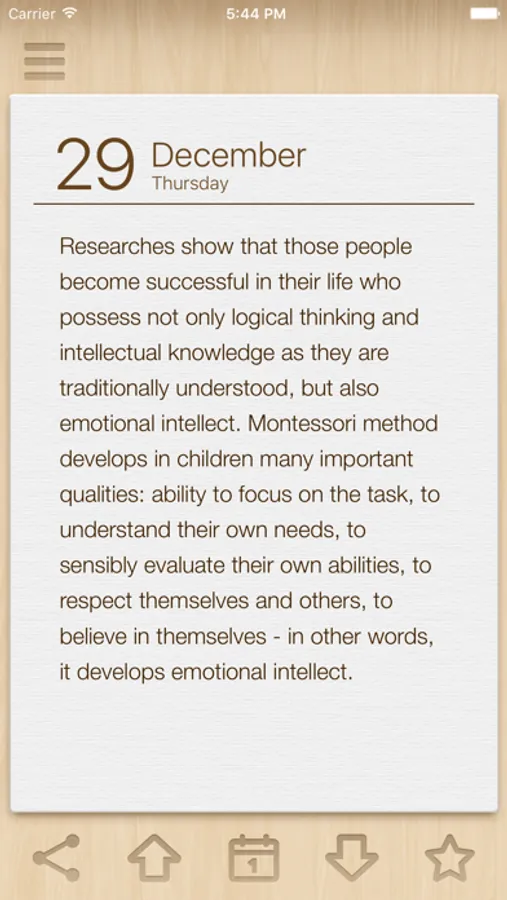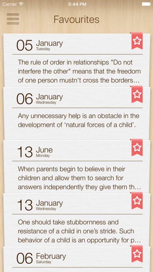 Reading of a note will take you from one to five minutes per day. Isn’t it a small pay for everyday improvement of relationships with your child? By adding notes to Favorites you can collect a selection of messages that are important for you. They can be used as affirmations - to be read, absorbed and implemented.