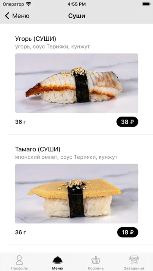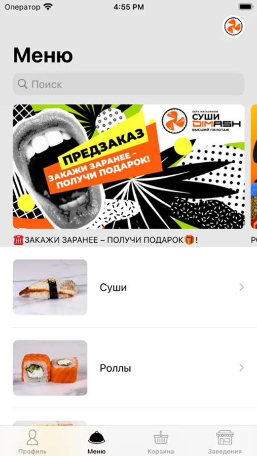 Как сделать заказ в приложении DIMASH: выберите понравившиеся позиции из меню. Добавьте их в корзину и перейдите на экран оформления заказа (по нажатию на иконку корзины).