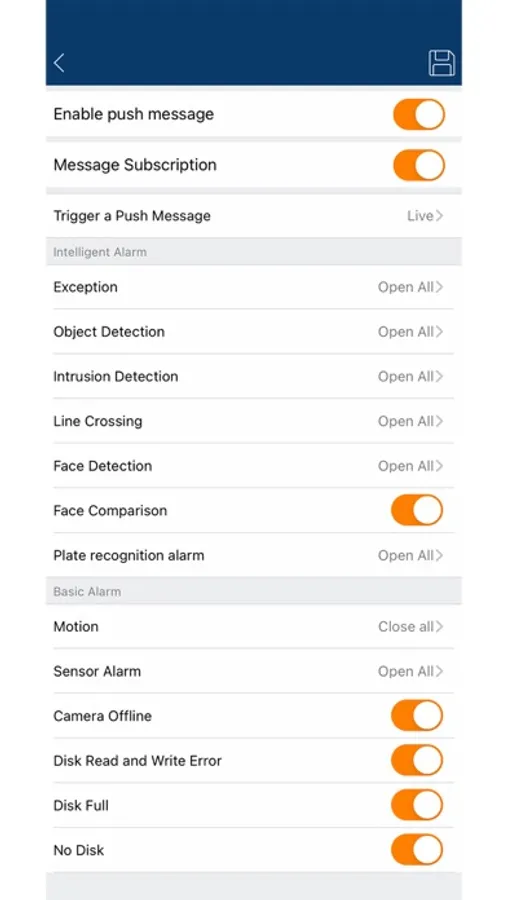 - Log view - Alarm, Record, Motion and etc.