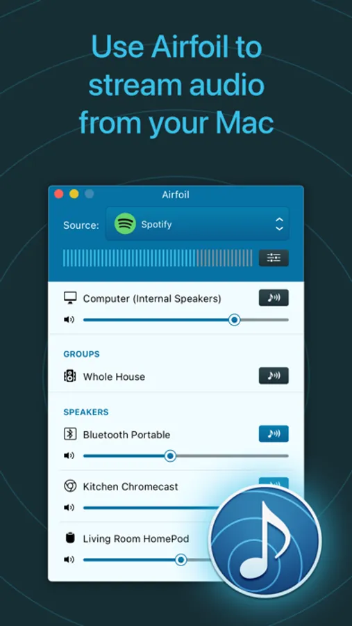 Airfoil Satellite turns your device into an audio receiver. Send any audio from your Mac with Airfoil and Airfoil Satellite!