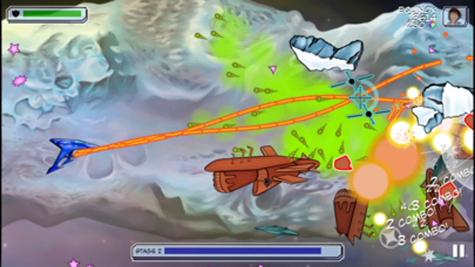 In a game more about reaction than rehearsal, upgrade and personalize your ship to best suit the mission at-hand and your playstyle. Relish in the spectacle of zany weapons such as the ice laser, orbital blades, wrecking ball, and more as you pummel your enemies.