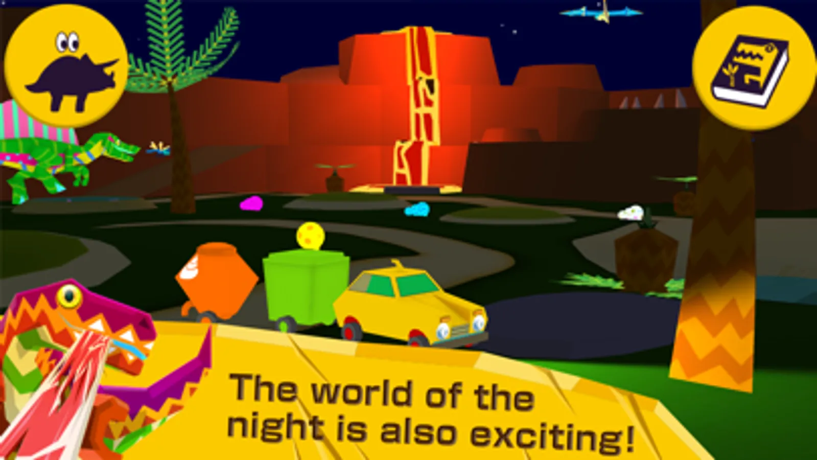 You are a Dinokeeper. Drive around a primitive island, collect dino food and feed the friendly dinos. Don't forget to clean up after them!
