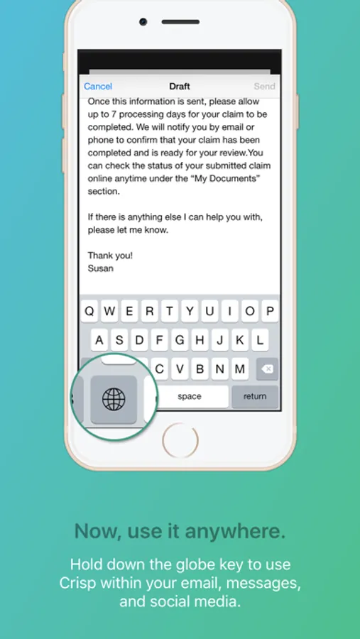 • Auto switch between Crisp and the standard Apple keyboard to quickly customize your message
