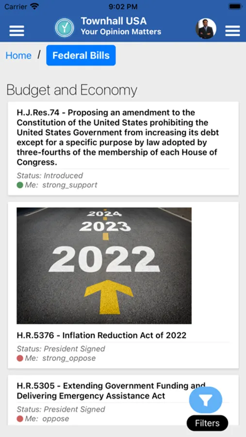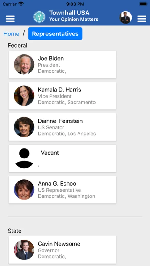 Townhall USA enables you to see the actual legislative bills, learn more about the issues you care, and have a conversation about it with each other and with your elected representatives.