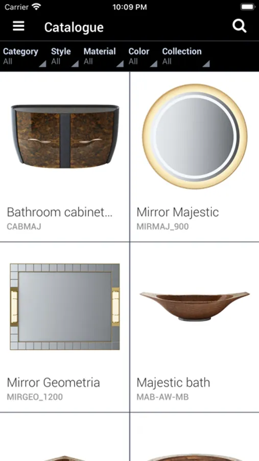 - Simple to use, complete company catalogue, incl. technical information; browsable by category, style, material, colour and collection