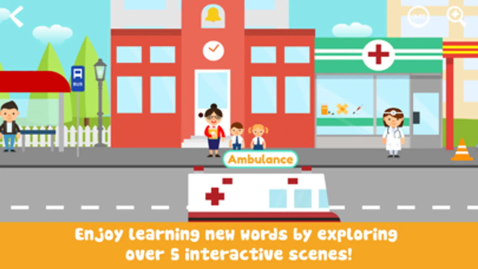 Let your child learn new words in English and Indonesian while exploring and tapping away the interactive scenery in Kidi Learn Words. Every time an object is tapped, an accompanying text and spoken words in the selected language will appear. This way your child can also learn independently when not accompanied by adult.