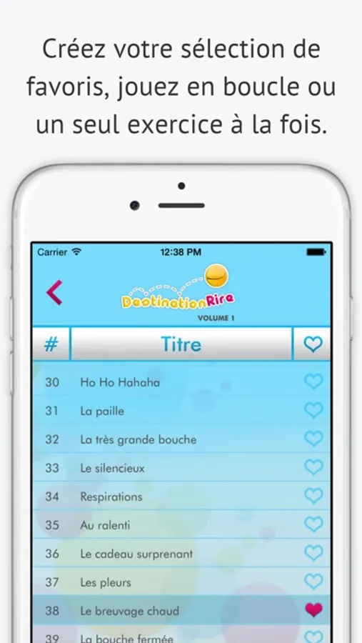 Créez votre sélection de favoris, jouez en boucle ou un seul exercice à la fois.