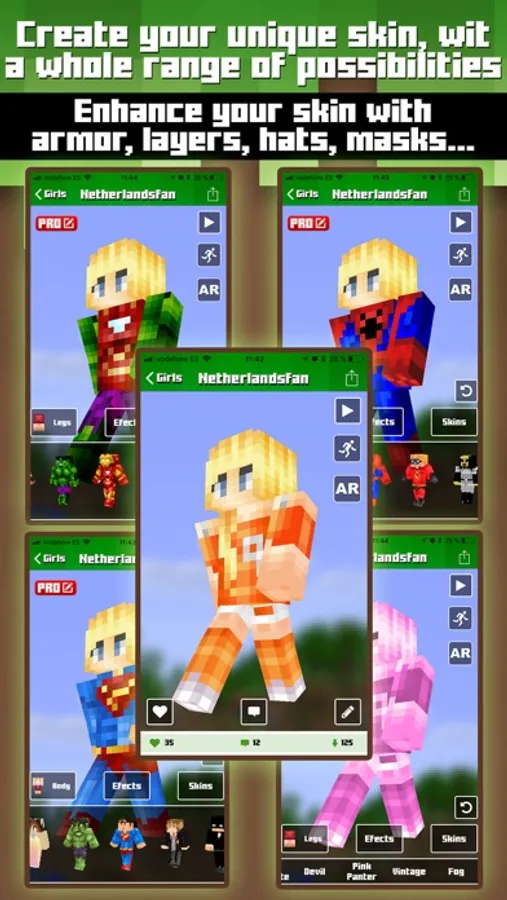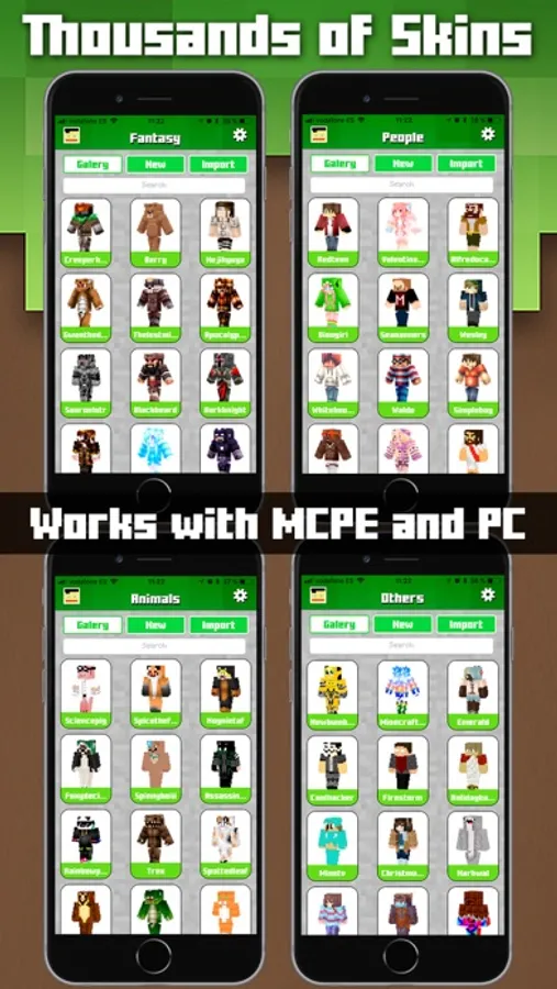 Skins MCPE for Minecraft, the newest app to put your skin in Minecraft PE and PC. Now with social network!