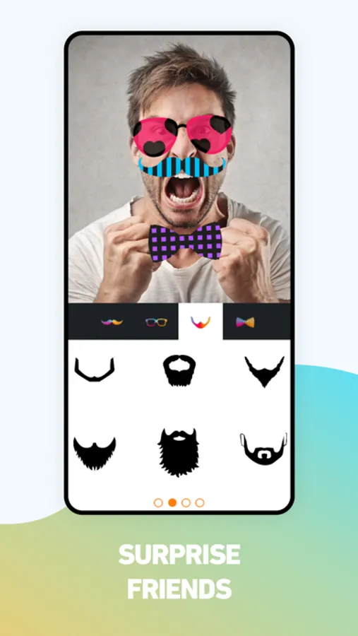 • Tools for masking: mustache, glasses, beards, butterflies and ties;