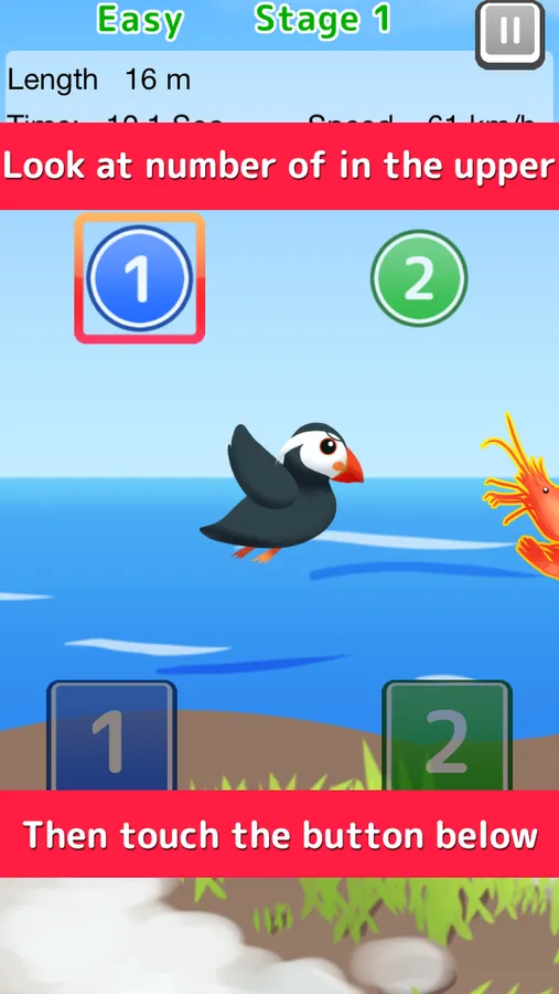 And help the fly birds (Etupirka / Tufted puffin), and try to move to the location of the shrimp!