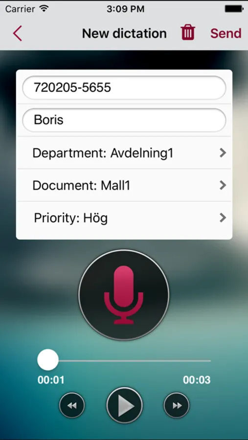 Medspeech Air is a portable Dictaphone designed for the medical sector. The app will record your memos or notes on the “go”, and your secretary can initiate the transcription as soon as the dictation has been uploaded to the server. Please contact your Medspeech reseller or Omilon for more information of how the get started with Medspeech Air. MedSpeech Air can be a compliment to the desktop version of Medspeech, or you can use it completely stand-alone. Patient demographics may be entered, as well as document type and priority settings.